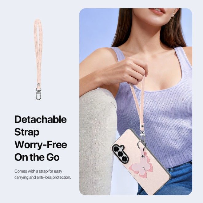 Die Luvy Series Smartphone-Hülle von Dux Ducis verbindet stilvolles Kunstleder mit einer strapazierfähigen Polycarbonat-Rückseite und schützt dein Samsung Galaxy S26 zuverlässig im Alltag. Der 360° drehbare Metallring bietet dir sicheren Halt mit einer Hand und ermöglicht gleichzeitig ein bequemes Aufstellen beim Streamen oder Fotografieren. Dank des abnehmbaren Tragegurts kannst du dein Samsung Galaxy S26 mühelos transportieren oder vor Verlust schützen. CNC-gefräste Aluminium-Elemente wie Tasten und Kameraring sorgen für ein robustes, edles Finish, während der Air-Cushion-Rahmen Stösse aus allen Richtungen abfedert. Eine perfekte Kombination aus Stil, Funktionalität und Schutz.
