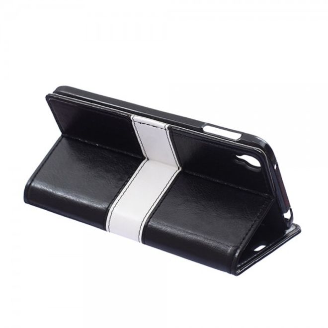 Alcatel One Touch Idol 3 5.5 Zweifarbiges Crazy Horse Leder Case - schwarz