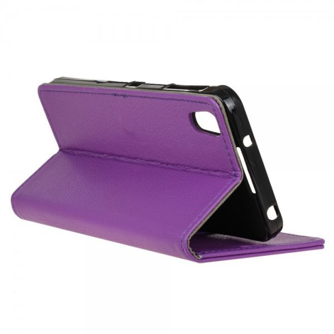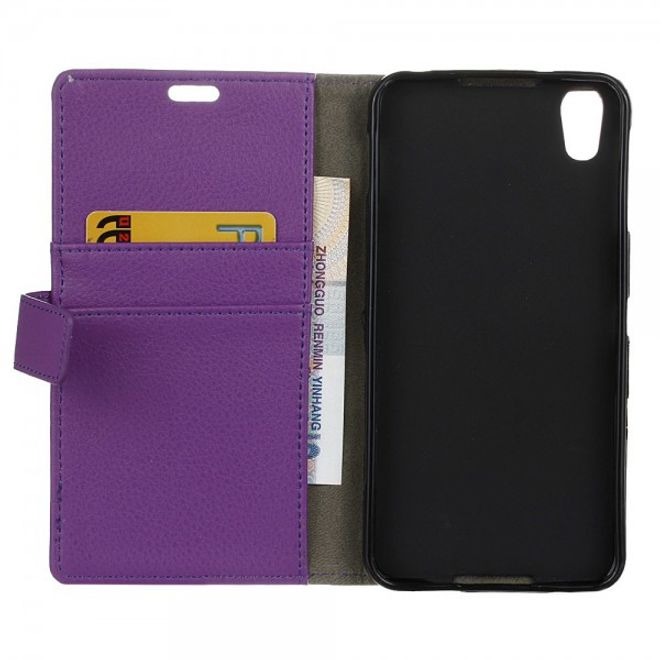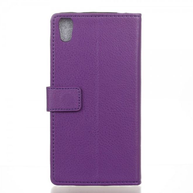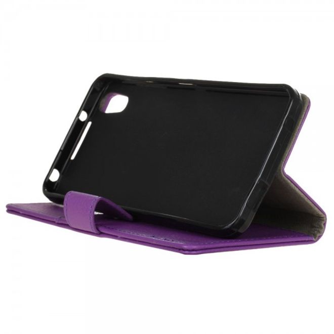 Alcatel OneTouch Idol 4 Klassische Leder Cover Handy Hülle mit Litchitextur und Standfunktion - purpur