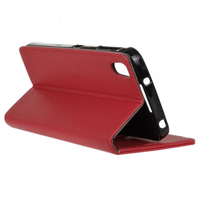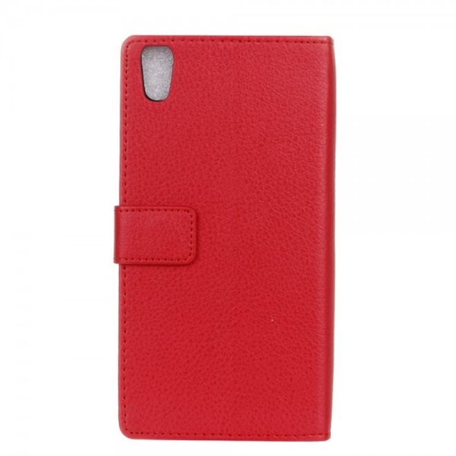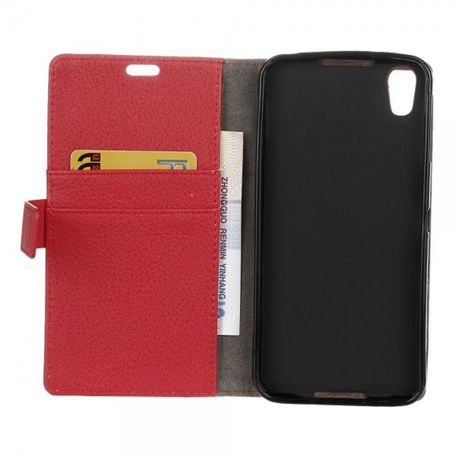 Alcatel OneTouch Idol 4 Klassische Leder Cover Handy Hülle mit Litchitextur und Standfunktion - rot