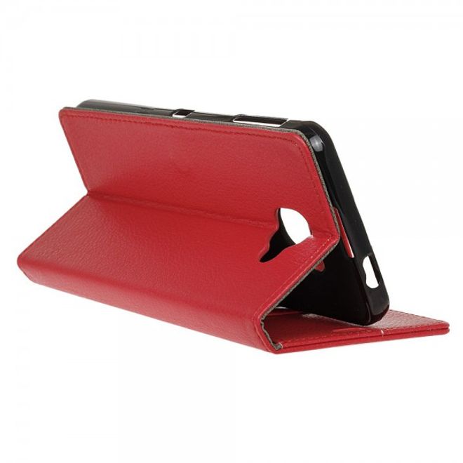 Alcatel OneTouch Idol 4S Klassische Leder Case Hülle mit Standfunktion - rot