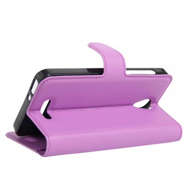 Alcatel OneTouch Pop 4 Zeitlose Leder Case Hülle mit Litchitextur und Standfunktion - purpur