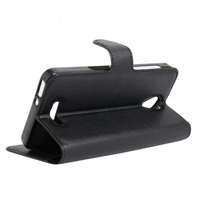 Alcatel OneTouch Pop 4 Zeitlose Leder Case Hülle mit Litchitextur und Standfunktion - schwarz