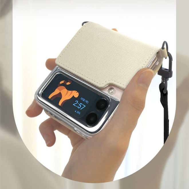 Samsung Galaxy Z Flip4 Hülle zum Umhängen aus der Canvas Diary Series von Araree in elfenbein