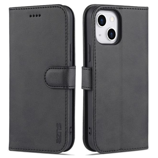AZNS - iPhone 15 Plus Hülle - Leder Bookcover - mit Kartenfach und Standfunktion - Wallet Stand Series - schwarz