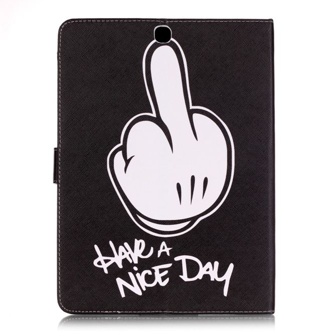 Schützen Sie Ihr Samsung Galaxy Tab S2 9.7 vor negativen Einflüssen! Denn es kann schnell einmal passieren, dass das Gerät umgestossen wird, auf den Boden fällt und kaputt geht. Mit unserer Case Leder Hülle für Samsung Galaxy Tab S2 9.7 schützen Sie Ihr Liebstes. Das Case aus Leder sieht mit dem Stinkefinger und Spruch Have a nice day stylisch aus und erfüllt das, was es verspricht.