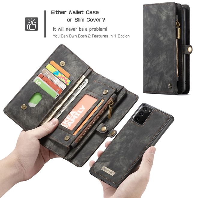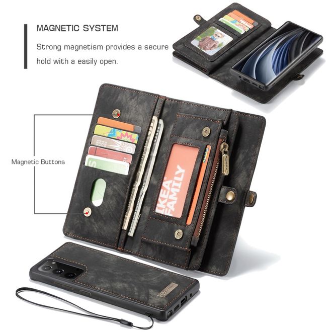 Caseme - Samsung Galaxy Note 20 Handyhülle - Leder Portemonnaie mit abnehmbarer Plastik Hülle - schwarz