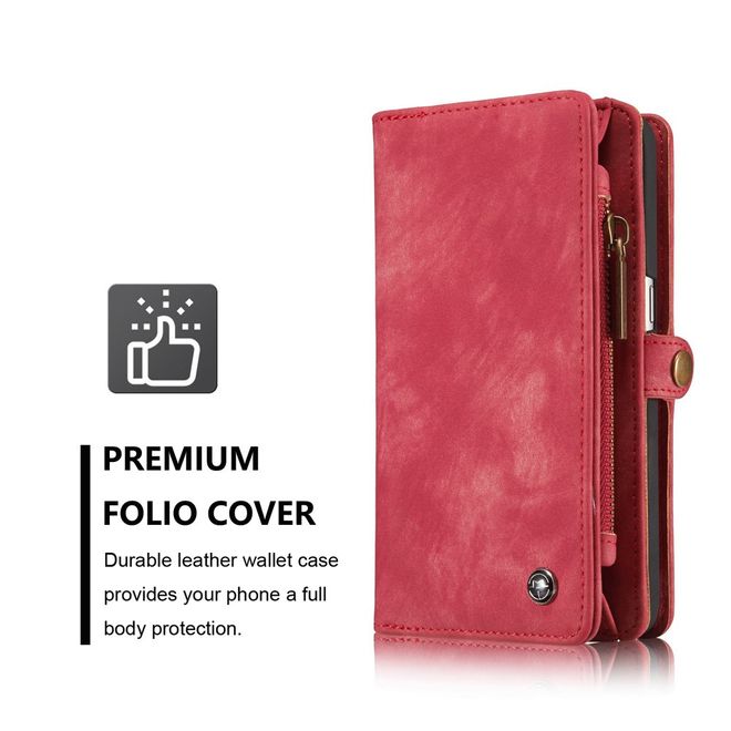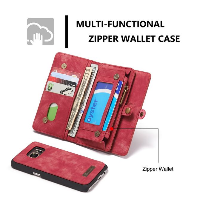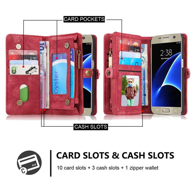 Caseme - Samsung Galaxy S7 Hülle - Case aus Leder/Plastik - Retrostyle - abnehmbares Plastik Cover - rot