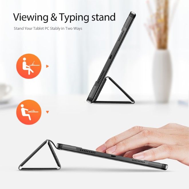 Die Hülle kann als praktischer Ständer zum Lesen, Eintippen von E-Mails und zum Schauen von Filmen benutzt werden. Beim Öffnen und Schliessen der Schutzhülle schaltet sich das Display automatisch an und aus. Der Innenbereich ist mit einem weichen Stoff ausgelegt, zum Schutz des Honor Pad X8a 11 Displays.