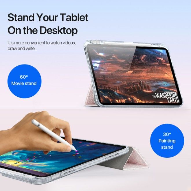 • Mehrere Betrachtungswinkel: Die Hülle ermöglicht es dir, dein iPad in verschiedenen Winkeln aufzustellen, sodass du bequem arbeiten, lesen oder Videos schauen kannst.