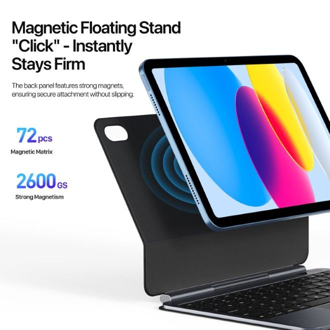Die Tastatur lässt sich über den USB-C Port aufladen und verfügt über einen 1200mAh integrierten Akku. Verbinde dein iPad 2025 (11. Gen) / iPad 2022 (10. Gen) per Bluetooth mit der Tastatur und schon kannst du lostippen. Die Aufstellfunktion lässt dein iPad 2025 (11. Gen) / iPad 2022 (10. Gen) wie ein Laptop aussehen und dank diversen einstellbaren Betrachtungswinkel ist ein ergonomisches Arbeiten garantiert.