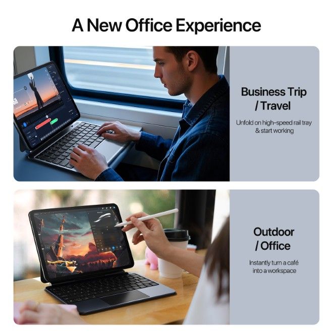 Die Tastatur lässt sich über den USB-C Port aufladen und verfügt über einen 1200mAh integrierten Akku. Verbinde dein iPad Air 11 (2025/2024/2022/2020) / iPad Pro 11 (2022/2021/2020/2018) per Bluetooth mit der Tastatur und schon kannst du lostippen. Die Aufstellfunktion lässt dein iPad Air 11 (2025/2024/2022/2020) / iPad Pro 11 (2022/2021/2020/2018) wie ein Laptop aussehen und dank diversen einstellbaren Betrachtungswinkel ist ein ergonomisches Arbeiten garantiert.