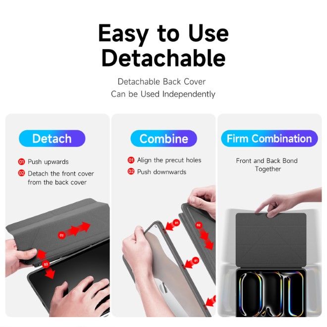 Das iPad Pro 11 (2024) Case hat aber noch viele weitere super Eigenschaften wie die Stifthalterung oder der magnetische Verschluss. Falls dich beim Gamen die Displayklappe stören sollte, kannst du diese ganz einfach im Handumdrehen entfernen.
