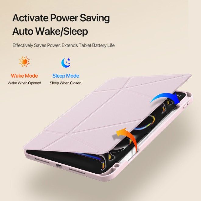 Schütze dein iPad Pro 11 (2025/2024) mit dem Vers Series Bookcover von Dux Ducis stilvoll und durchdacht. Der hochwertige Materialmix aus PU, PC und TPU liegt angenehm in der Hand und bietet zuverlässigen Schutz rundum. Dank der 3-in-1 Standfunktionen kannst du bequem im Querformat schauen, im Hochformat lesen oder im Schreib- und Zeichenmodus arbeiten. Besonders praktisch ist das Stiftfach, das deinen Stylus sicher hält. Die Auto-Sleep/Wake-Funktion sorgt dafür, dass dein iPad Pro 11 (2025/2024) beim Öffnen sofort aktiv ist und beim Schliessen Energie spart - perfekt für Alltag, Studium oder Beruf.