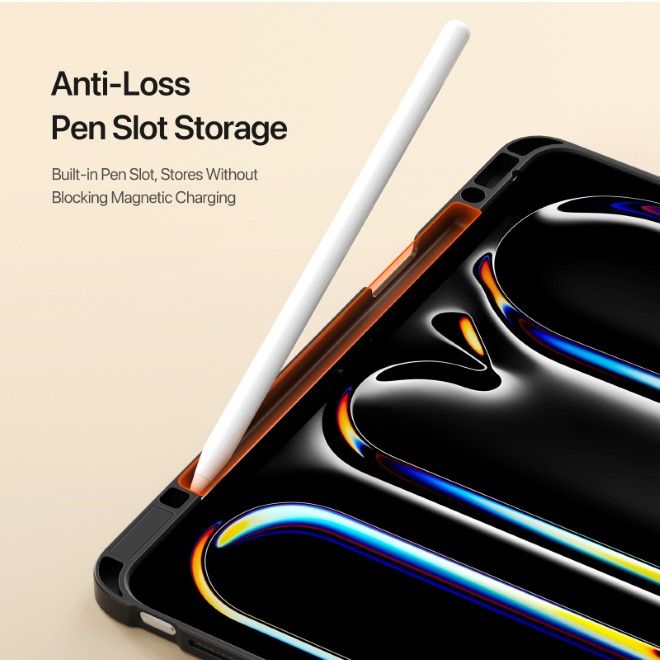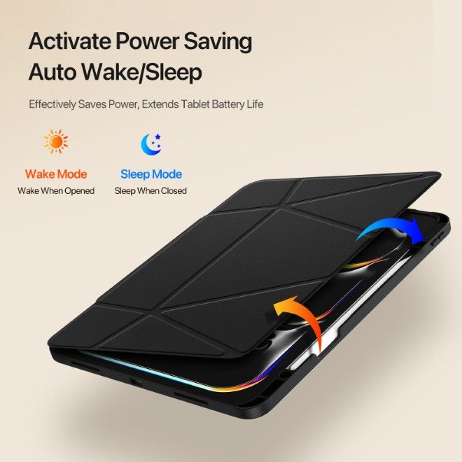 Schütze dein iPad Pro 13 (2025/2024) mit dem Vers Series Bookcover von Dux Ducis stilvoll und durchdacht. Der hochwertige Materialmix aus PU, PC und TPU liegt angenehm in der Hand und bietet zuverlässigen Schutz rundum. Dank der 3-in-1 Standfunktionen kannst du bequem im Querformat schauen, im Hochformat lesen oder im Schreib- und Zeichenmodus arbeiten. Besonders praktisch ist das Stiftfach, das deinen Stylus sicher hält. Die Auto-Sleep/Wake-Funktion sorgt dafür, dass dein iPad Pro 13 (2025/2024) beim Öffnen sofort aktiv ist und beim Schliessen Energie spart - perfekt für Alltag, Studium oder Beruf.