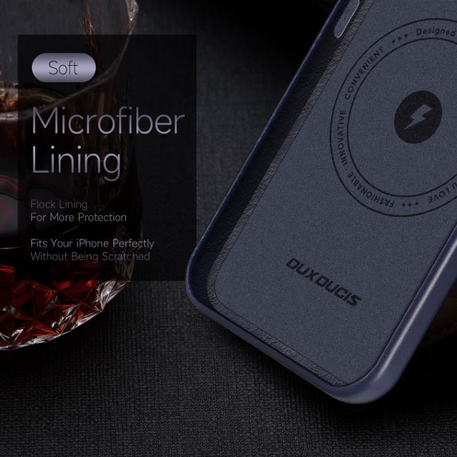 iPhone 14 Plus MagSafe kompatibel Schutzhülle mit Echtleder-Rückseite aus der Naples Series von Dux Ducis in Blau
