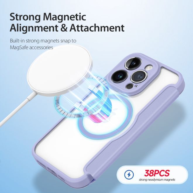 Dux Ducis - iPhone 14 Pro Hülle - Leder Bookcover - MagSafe - Skin X Pro Series - purpur