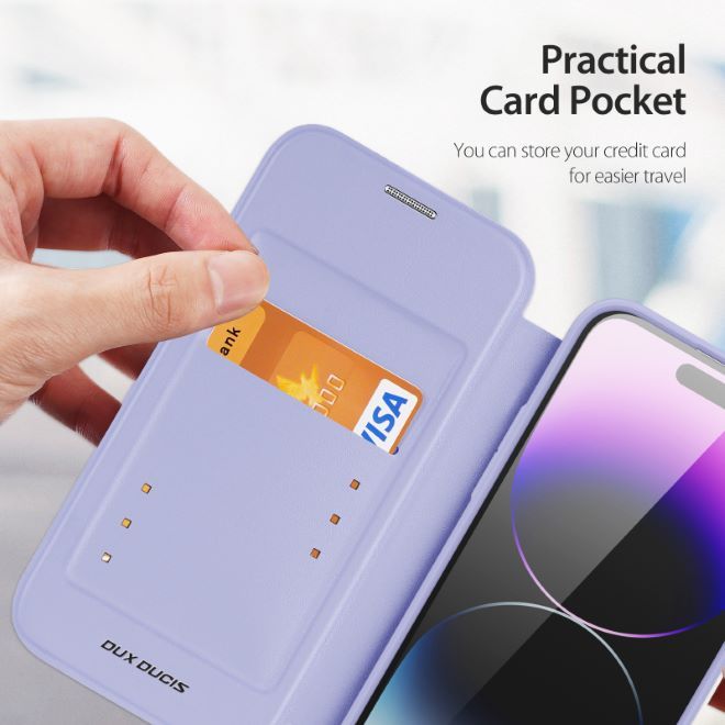 Diese iPhone 14 Pro Hülle aus der Skin X Pro Series von Dux Ducis mit gehärteter Polycarbonat Rückseite, weichem TPU-Gummi-Rand und eleganter Kunstleder Displayklappe verleiht deinem iPhone 14 Pro nicht nur ein angesagtes Design, sondern bietet deinem Smartphone auch einen optimalen Schutz vor Kratzern, Schmutz und Staub sowie vor dem alltäglichen Verschleiss. Zudem ist die Schutzhülle Apple MagSafe kompatibel.