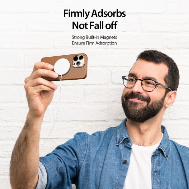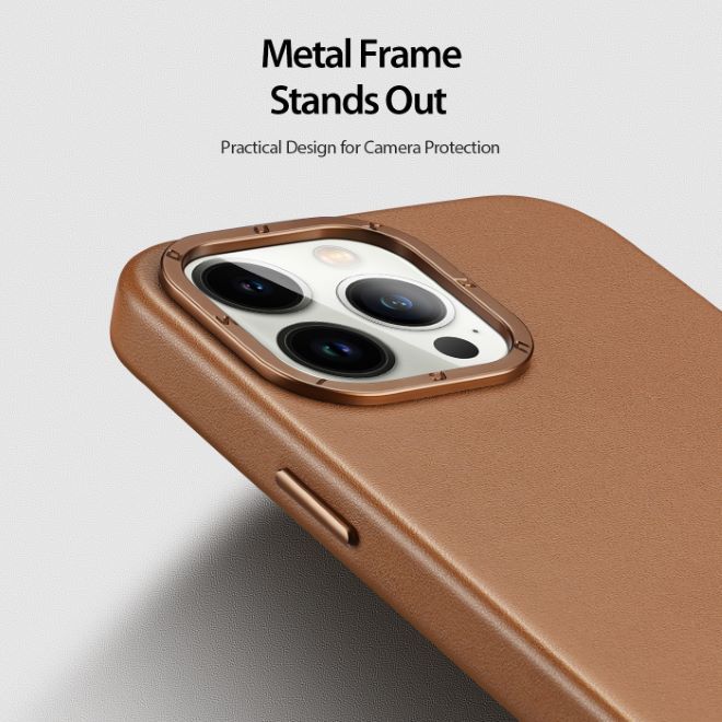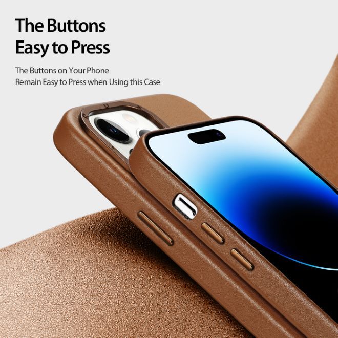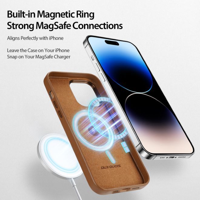 iPhone 14 Pro MagSafe kompatible Schutzhülle aus Kunstleder aus der Grit Series von Dux Ducis in braun
