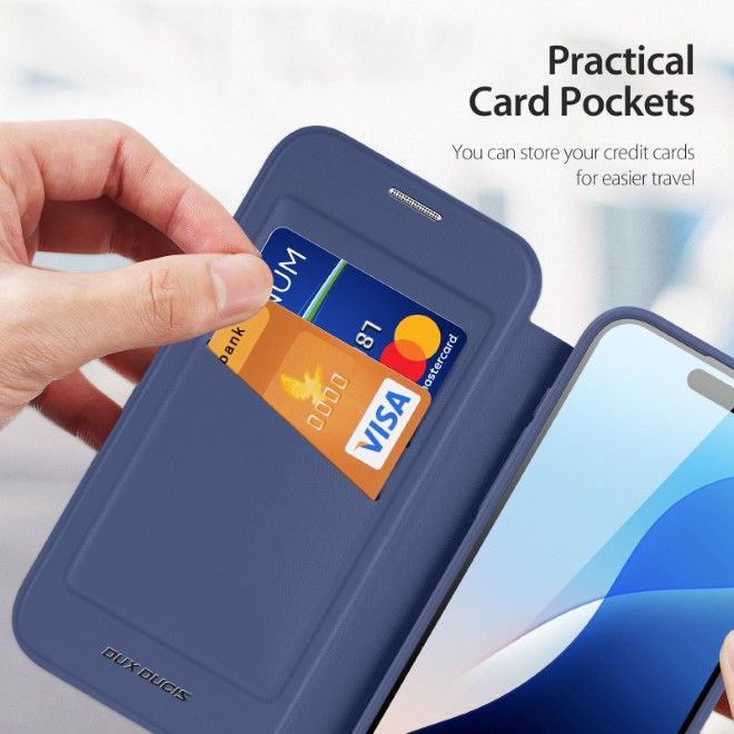 Elegantes Bookcover mit MagSafe und Standfunktion der Skin X Pro Series von Dux Ducis in der Farbe blau