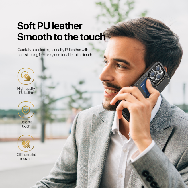 Dieses Hardcase für dein iPhone 16 Pro kombiniert wichtige Eigenschaften miteinander. Es hat eine innovative Standfunktion (Quer- und Hochformat), unterstützt MagSafe und hat Platz für zwei Karten, wobei die Karte auf der Innenseite zusätzlich durch RFID-Blocking vor digitalem Diebstahl geschützt ist. Dank der Verarbeitung hochwertiger Materialien ist die Hülle sehr robust und langlebig. Sie schützt dabei dein iPhone 16 Pro sicher vor Staub, Kratzern, Stössen und Stürzen. Das Display und die Rückkameras werden durch die erhöhten Ränder ebenfalls geschützt. Die Montage ist dank der elastischen Ränder kinderleicht. Der integrierte RFID Blocker schützt vor Datendiebstahl.