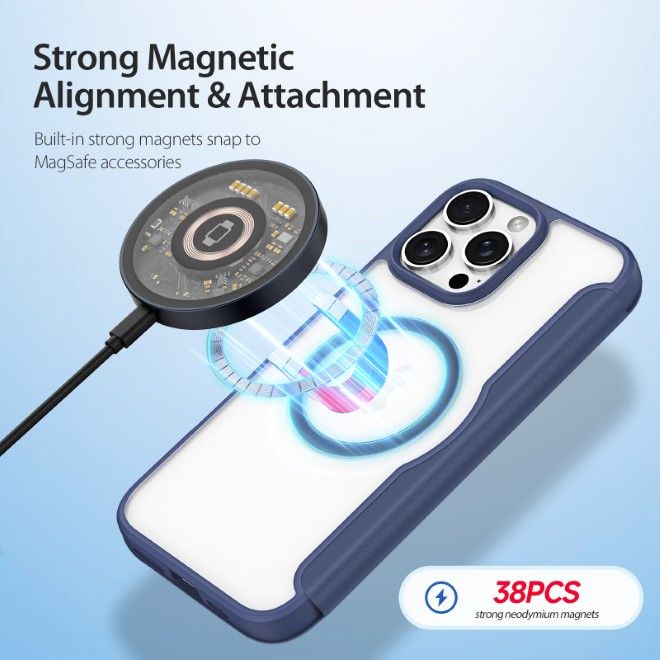 Dux Ducis - iPhone 16 Pro Max Hülle - Leder Bookcover - MagSafe - Skin X Pro Series - blau