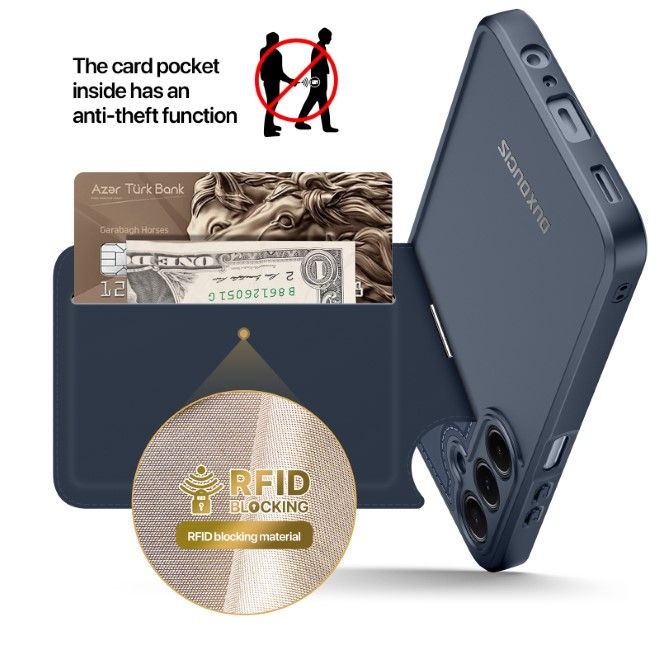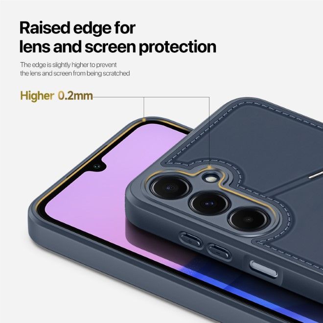 Dieses Hardcase für dein Galaxy A15 5G / 4G kombiniert wichtige Eigenschaften miteinander. Es hat eine innovative Standfunktion (Quer- und Hochformat) und hat Platz für zwei Karten, wobei die Karte auf der Innenseite zusätzlich durch RFID-Blocking vor digitalem Diebstahl geschützt ist. Dank der Verarbeitung hochwertiger Materialien ist die Hülle sehr robust und langlebig. Sie schützt dabei dein Galaxy A15 5G / 4G sicher vor Staub, Kratzern, Stössen und Stürzen. Das Display und die Rückkameras werden durch die erhöhten Ränder ebenfalls geschützt. Die Montage ist dank der elastischen Ränder kinderleicht.
