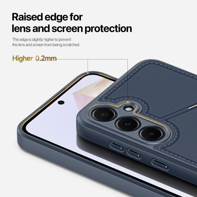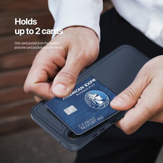 Dieses Hardcase für dein Galaxy A35 5G kombiniert wichtige Eigenschaften miteinander. Es hat eine innovative Standfunktion (Quer- und Hochformat) und hat Platz für zwei Karten, wobei die Karte auf der Innenseite zusätzlich durch RFID-Blocking vor digitalem Diebstahl geschützt ist. Dank der Verarbeitung hochwertiger Materialien ist die Hülle sehr robust und langlebig. Sie schützt dabei dein Galaxy A35 5G sicher vor Staub, Kratzern, Stössen und Stürzen. Das Display und die Rückkameras werden durch die erhöhten Ränder ebenfalls geschützt. Die Montage ist dank der elastischen Ränder kinderleicht.