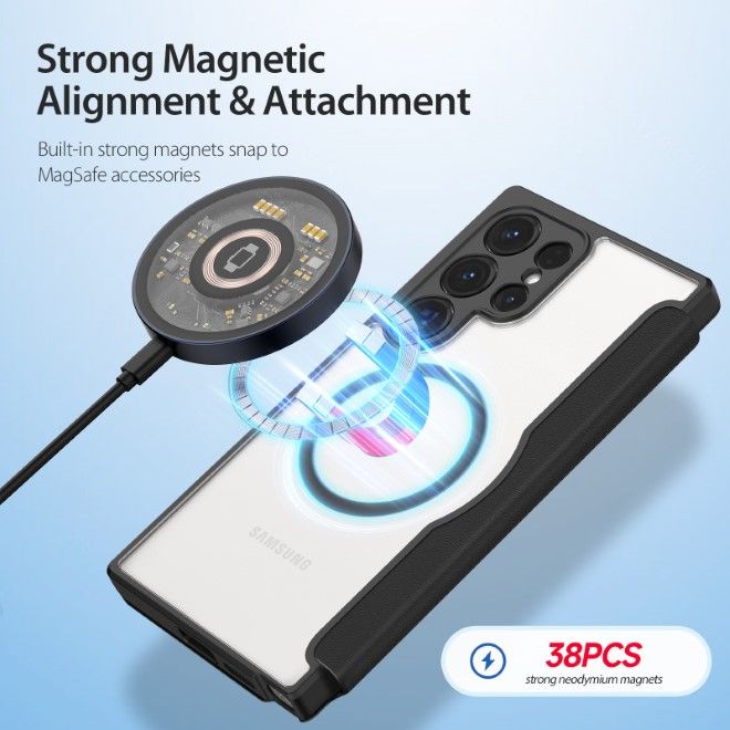 Das moderne MagSafe Leder Bookcover aus der Skin X Pro Serie von Dux Ducis für dein Samsung Galaxy S24 Ultra