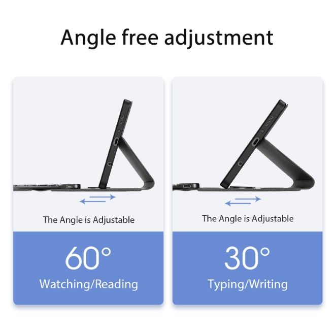 Kopple dein Samsung Galaxy A11 / A9 über Bluetooth mit der Tastatur, und die Tastatur kann 30 Tage lang ohne Unterbrechungen eingesetzt werden, sobald sie vollständig aufgeladen ist.