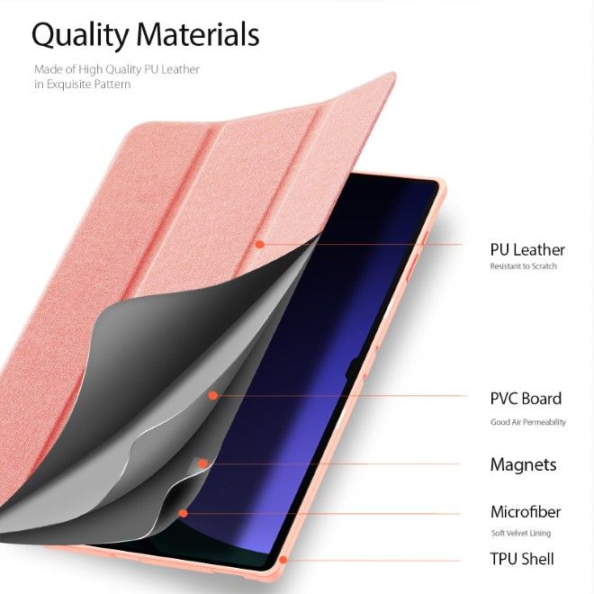 Dux Ducis - Samsung Galaxy Tab S10 Ultra / S9 Ultra / S8 Ultra Hülle - Leder Smart Flip Case - Domo Series - pink