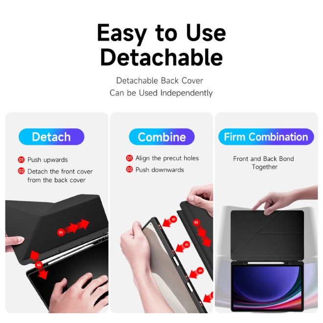 Das Samsung Galaxy Tab S9+ / S9 FE+ Case hat aber noch viele weitere super Eigenschaften wie die Stifthalterung oder der magnetische Verschluss. Falls dich beim Gamen die Displayklappe stören sollte, kannst du diese ganz einfach im Handumdrehen entfernen.