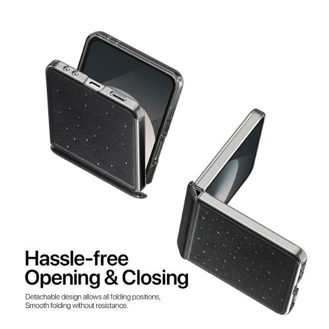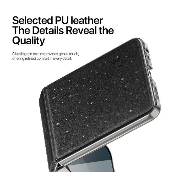 Suchst du eine Hülle für dein Galaxy Z Flip7, die nicht nur schützt, sondern auch stylisch auffällt? Die Stex Series von Dux Ducis kombiniert edles Design mit durchdachter Funktionalität. Dank der lichtempfindlichen Laser- und Sternmotive sorgt sie für einen echten Wow-Effekt bei jeder Bewegung. Das abnehmbare, magnetische Design beeinträchtigt das Aufklappen deines Smartphones kein bisschen. Die 360° Schutzkonstruktion und das weiche Mikrofaserfutter innen schützen dein Flip7 zuverlässig, während die abgerundeten Kanten angenehm in der Hand liegen.