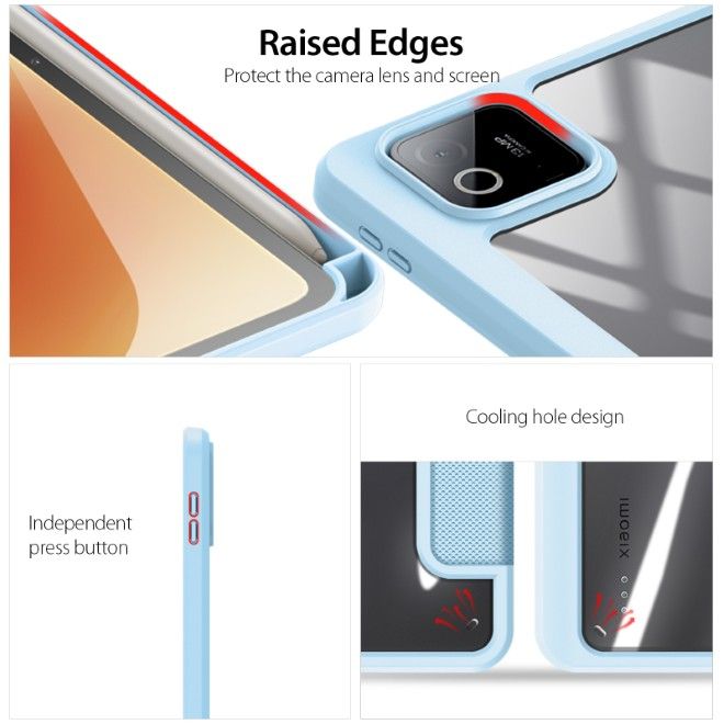 Die Hülle kann als praktischer Ständer zum Lesen, Eintippen von E-Mails und zum Schauen von Filmen benutzt werden. Beim Öffnen und Schliessen der Schutzhülle schaltet sich das Display automatisch an und aus. Der Innenbereich ist mit einem weichen Stoff ausgelegt, zum Schutz des Xiaomi Pad 8 / 7 Pro / 7 Displays.