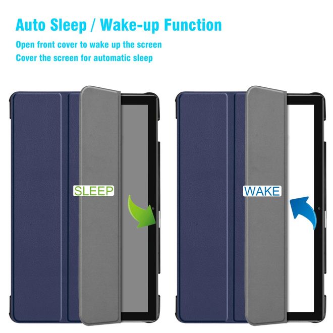 Mit dieser dreifach faltbaren Huawei MediaPad M6 10.8 Hülle in dunkelblau bist du bestens gewappnet - auch für unterwegs