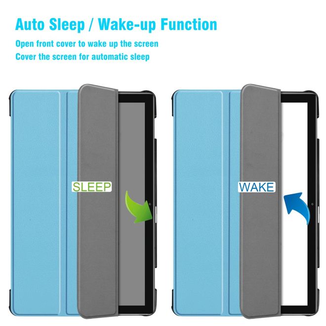 Mit dieser dreifach faltbaren Huawei MediaPad M6 10.8 Hülle in hellblau bist du bestens gewappnet - auch für unterwegs