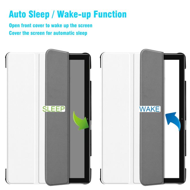 Mit dieser dreifach faltbaren Huawei MediaPad M6 10.8 Hülle in weiss bist du bestens gewappnet - auch für unterwegs