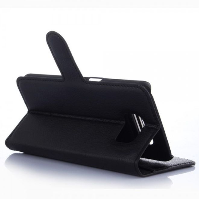 Galaxy S6 Edge Leder Case mit Litchimuster - schwarz