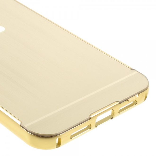Schlankes aufschiebbares Aluminium Case und Bumper in einem schützen Ihr Gigaset ME Pure 5.5. Die Handyhülle in Gold hat eine schöne glänzend metallische Rückseite aus gebürstetem Aluminium, die auch auf Dauer schön bleibt, weil das Aluminium kratzfest eloxiert ist. Sollten Sie beim Kauf einige Kratzer sehen, überprüfen Sie bitte, ob es sich dabei nicht um die dünne Schutzfolie handelt. Diese kann von der Rückseite der Handyhülle dann einfach entfernt werden.