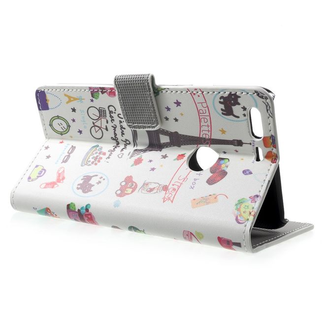 Google Pixel XL Handyhülle - Case aus Leder - mit Standfunktion - Eiffelturm und kleine Sujets