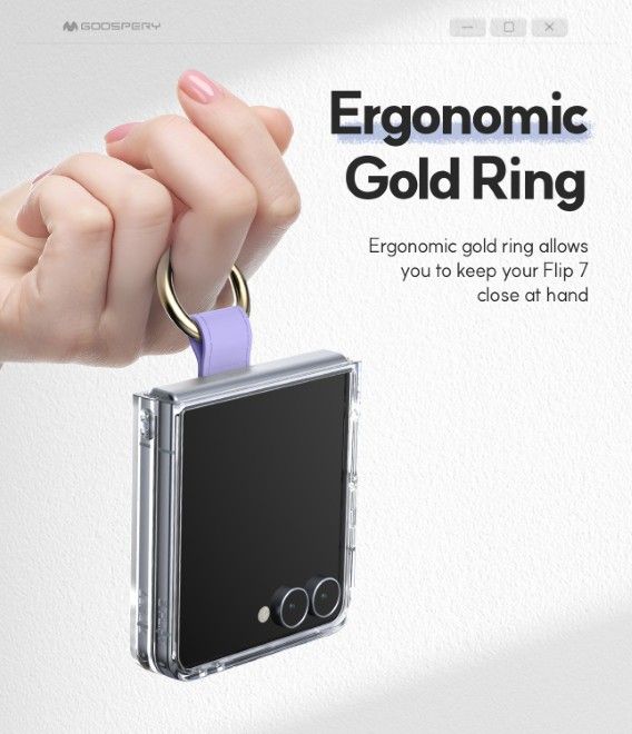 Schütze dein Galaxy Z Flip7 mit der stilvollen und funktionalen Goospery Handyhülle. Diese kristallklare Hülle vergilbt nicht und bewahrt die ursprüngliche Schönheit deines Telefons. Der ergonomische Goldring ermöglicht es dir, dein Flip nah bei dir zu tragen und bietet gleichzeitig eine horizontale Standfunktion für bequemes Ansehen von Videos.