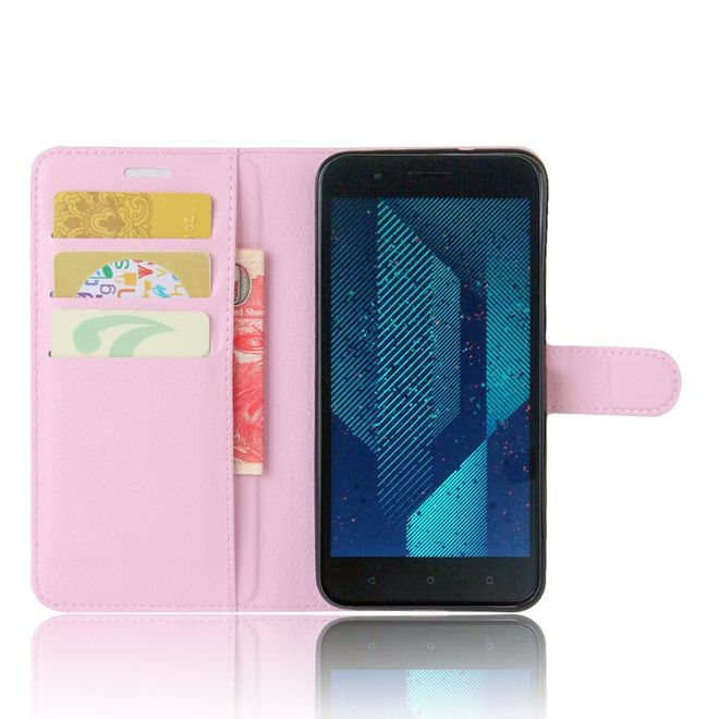 HTC One X10 Handy Hülle - Case aus Leder - mit Litchitextur und Standfunktion - pink