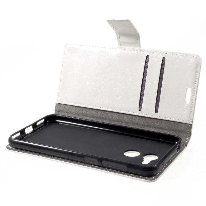 Huawei Honor 6C Pro / V9 Play Handyhülle - Crazy Horse Leder Case - mit Magnetverschluss - weiss