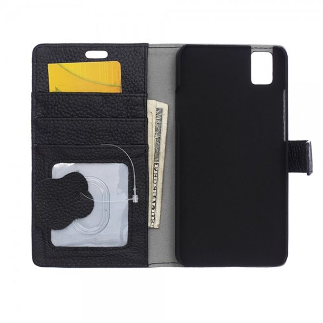 Huawei Honor 7i Echtleder Cover Hülle mit Kreditkartenslots - schwarz
