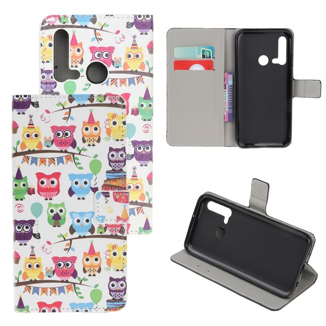 Huawei P20 Lite (2019) Handy Hülle - Leder Bookcover Image Series - Eulenfamilie