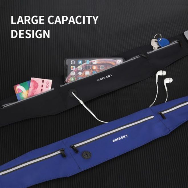 Der coole Laufgürtel für Handys bis 6.5 Zoll in Schwarz mit drei Reissverschlussfächern und silbernen Reflektoren trägt sich dank dem flachen, enganliegenden Design ist ein Muss für alle Jogging- und Fitness-Liebhaber. Die Bauchtasche bietet genug Platz für Ihr Smartphone und andere kleinere Wertsachen wie z.B. Kreditkarte und Geld und hat einen praktischen Kopfhörerausgang. Dank elastischem, verstellbarem Gurt passt der Laufgürtel auf fast jede Taille.
