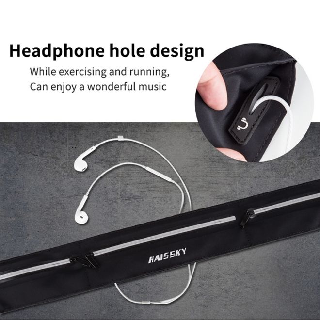 Der coole Laufgürtel für Handys bis 6.5 Zoll in Schwarz mit drei Reissverschlussfächern und silbernen Reflektoren trägt sich dank dem flachen, enganliegenden Design ist ein Muss für alle Jogging- und Fitness-Liebhaber. Die Bauchtasche bietet genug Platz für dein Smartphone und andere kleinere Wertsachen wie z.B. Kreditkarte und Geld und hat einen praktischen Kopfhörerausgang. Dank elastischem, verstellbarem Gurt passt der Laufgürtel auf fast jede Taille.