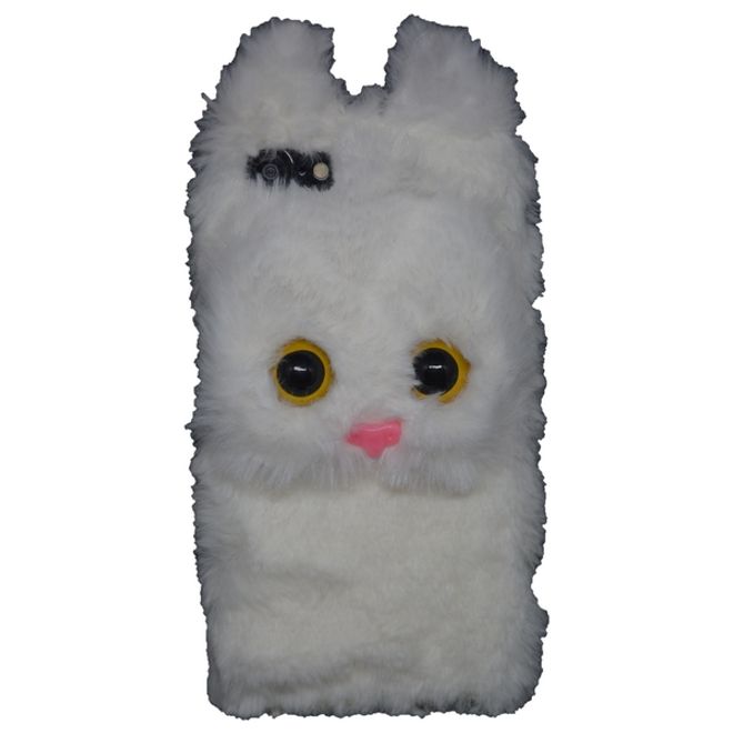 MU Style - iPhone SE (2022) / SE (2020) / 8 / 7 Hülle - süsses, flauschiges Katzen Backcover - weiss