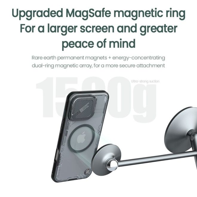 Mit der Iceblade Prop Schutzhülle für dein iPhone 16 Pro Max erhältst du nachhaltigen Schutz ohne Kompromisse beim Stil. Diese Hülle besteht aus umweltfreundlichen, biobasierten Materialien, die aus Mais und Zuckerrohr gewonnen werden, und hilft so, den CO₂-Ausstoß zu reduzieren. Die Hülle bleibt klar und vergilbt nicht, was ihre Ästhetik auch langfristig erhält. Das moderne Design mit schlichten Linien folgt dem urbanen Trend und verleiht deinem iPhone 16 Pro Max einen stylischen Look. Der Spiegelständer aus hochwertigem Luft- und Raumfahrt-Aluminium schützt nicht nur die Linse, sondern dient auch als praktischer Standfuß im "Space-Capsule"-Look. Dank des starken, integrierten Magneten ist die Hülle perfekt für MagSafe, und das Bayer-Weichgummi sorgt für optimalen Stoßschutz.