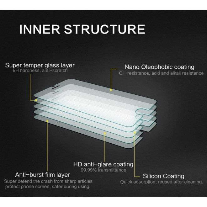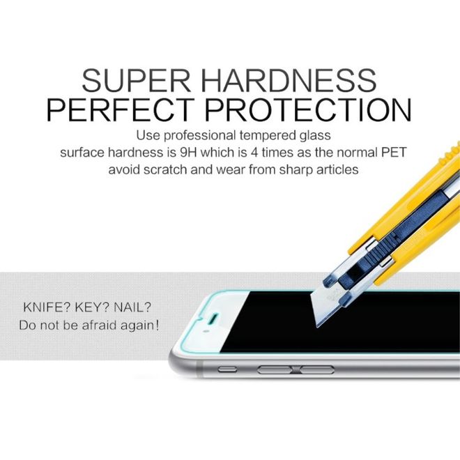 Der passgenaue Screen Protector von Nillkin aus der Serie Amazing H ist aus gehärtetem Schutzglas hergestellt. Die Schutzfolie besteht aus einem ultradünnen und extrem klaren Glas mit Härtegrad 9H. Das Schutzglas schützt das wertvolle Display hervorragend vor mechanischen Einwirkungen wie Kratzern und Schlägen.